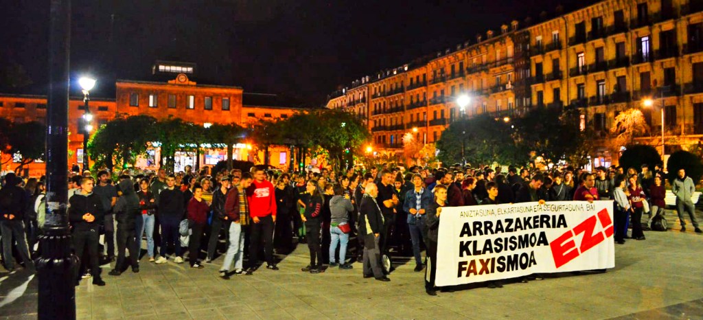 Zer ordezkatzen du faxismoak eta zer antifaxismoak? Ideia bat egiteko, Lyongo faxistak Palestinaren aldeko ekitaldi baten aurka egitera zihoazen. Palestinan, azken hiru urteetan, 70.000 pertsona inguru akabatu dituzte sionistek. Hori nahikoa ez eta faxistek, indarraren bidez, Palestinari elkartasuna adieraztea ekidin nahi zuten. Faxismoa kapitalismoaren aurpegi gordinena da; langileen aurka, emakumeen aurka, etorkinen aurka. Kaleko antifaxismoa, aldiz, lehenengoaren biolentziari aurre egiten dioten taldeek osatzen dute, estatuak mugimendu antikapitalistak babesgabe utziko dituelako jakitun. Antifaxismoak, faxismoaren erasoaldiaren aurrean, langileon eskubideak defendatzen ditu; antolatzeko eta mobilizatzeko eskubideak, besteak beste. Biolentzia faxistari estatuek ez diote jaramonik egiten, eta are: hainbat kasutan, berau babesten dute. Horrenbestez, antifaxismoa langileontzat beharrezko tresna da, gure burua defendatu nahi badugu behintzat.