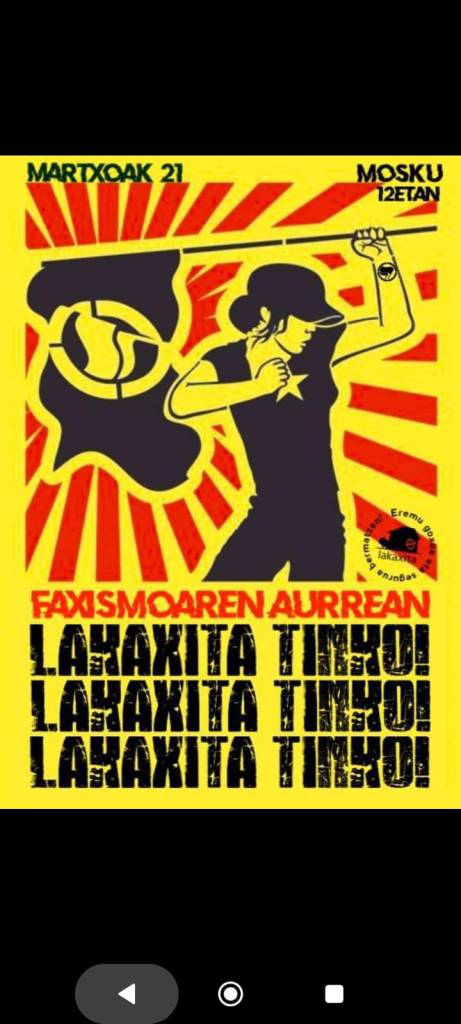 «Faxistek sistemaren edozein alternatiba suntsitzea dute helburu, horiek zapaltzea eta isilaraztea. Eta gaztetxeak dituzte jomugan, besteak beste». Irungo Lakaxita (Gipuzkoa) gaztetxearen kontrako eraso faxistak salatu dituzte bertako kideek, eta gogoratu «hainbat eta hainbat» izan direla azken bi ikasturteetan jasan dituzten erasoak. Hortaz, Lakaxita defendatzeko deia egin diete eskualdeko eragileei: elkarretaratzea eginen dute larunbat eguerdian, Irungo Mosku plazan.