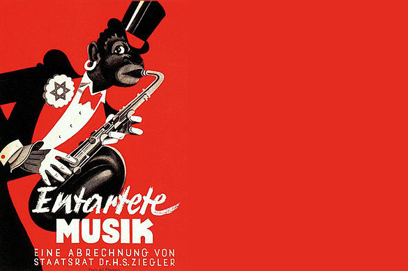 En la imaginación de las fuerzas reaccionarias de la Europa y la América de los años 20, 30 y 40, el jazz ocupó el lugar que en los años 50, 60 y 70 ocuparía el rock’n’roll. Estos dos descendientes del blues han encarnado, en el plano musical, la decadencia moral y cultural de Occidente a ojos de los cenizos que vienen pronosticando el final de la civilización desde la era de las revoluciones ilustradas. Un movimiento reaccionario, en particular, destacó por el intenso odio que manifestó hacia el jazz: el nacionalsocialismo. Los nazis despreciaron al jazz, persiguieron a sus músicos y aficionados, y dedicaron una fuerte actividad propagandística a prevenir a los “buenos alemanes” de la amenaza que suponía la propagación de un sonido al que calificaban de entartete musik (“música degenerada”). Calificativo que el jazz, por cierto, tuvo el honor de compartir con gigantes como el judeo-alemán Felix Mendelssohn.