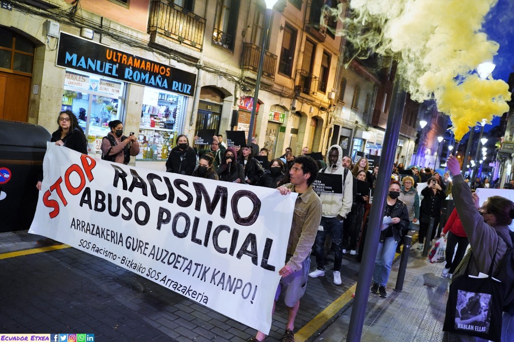 Estos titulares destacaban que el 61% de los detenidos por la Ertzaintza en Araba, Bizkaia y Gipuzkoa el año pasado eran extranjeros, considerando como «locales» a cualquier persona nacida en España. Tampoco sorprende que este titular se compartiera con entusiasmo en las redes sociales. Sin embargo, los datos presentados por el Ministerio de Seguridad del País Vasco al Parlamento de Gasteiz pueden interpretarse de otra manera, siempre que se haga un esfuerzo por eliminar el racismo de la ecuación. Un extranjero tiene el doble de probabilidades de ser detenido bajo sospecha. Las cifras del ministerio reflejan este doble rasero aplicado por la policía. – (Manifestación contra el racismo entre Pasaia y Donostia el 22 de marzo / foku)